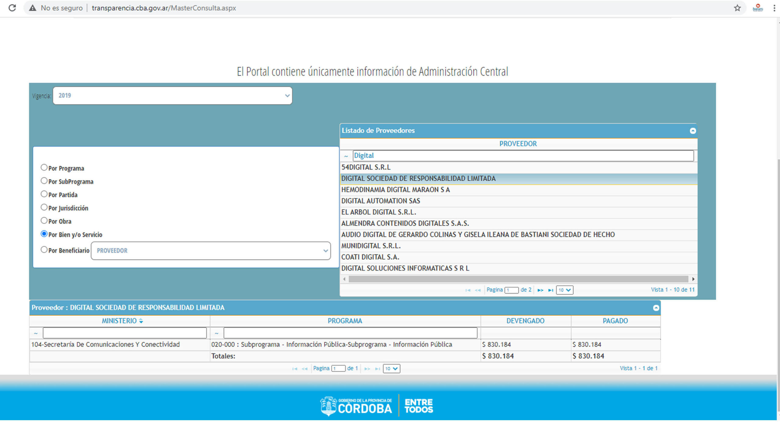 Captura de pantalla http://transparencia.cba.gov.ar/