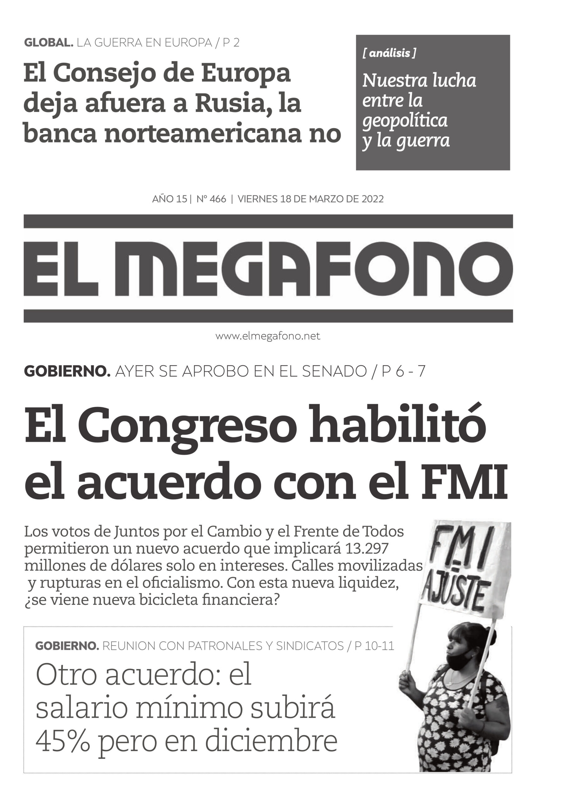 Marzo 2022: Juntos por el Cambio y el Frente de Todos votan nuevo acuerdo con el FMI. En las calles miles le dicen no al organismo internacional y el ajuste.