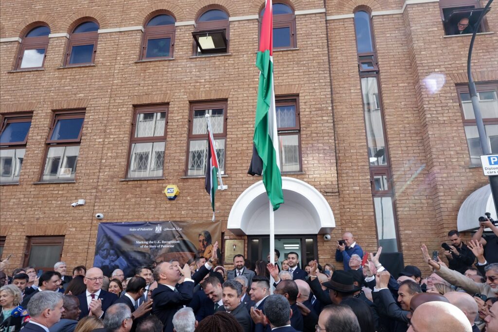 El presidente de la Autoridad Palestina, Mahmud Abás afirmó que este reconocimiento “constituye un paso importante y necesario para lograr una paz justa y duradera de acuerdo con la legitimidad internacional”. El lunes de esta semana, Husam Zomlot, representante de la Misión Palestina en el Reino Unido, izó la bandera Palestina como un acto simbólico de la futura embajada en territorio británico.