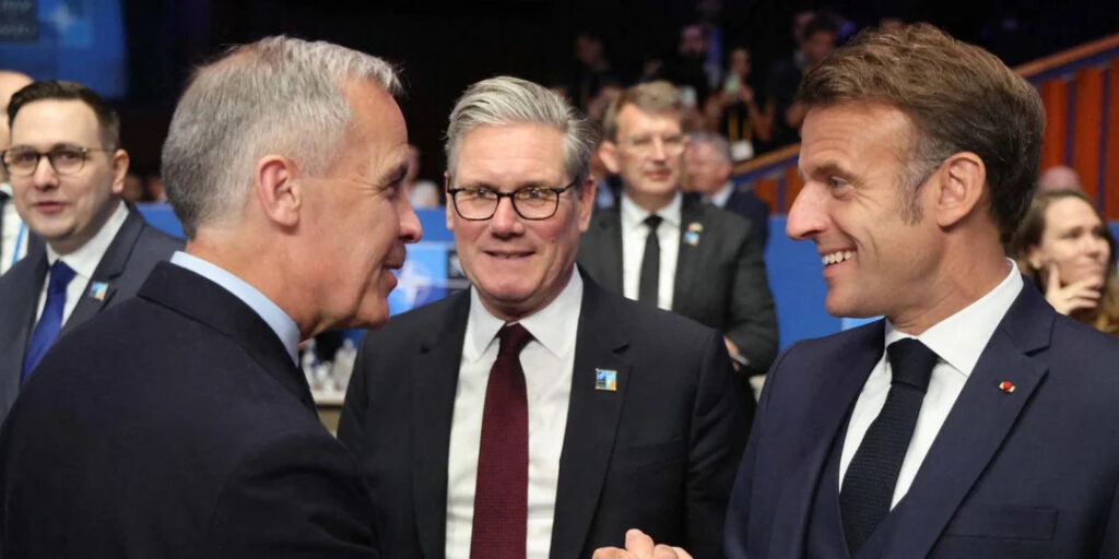 Mark Joseph Carney (CAN), Keir Starmer (RU) y Emmanuel Macron (FRA).